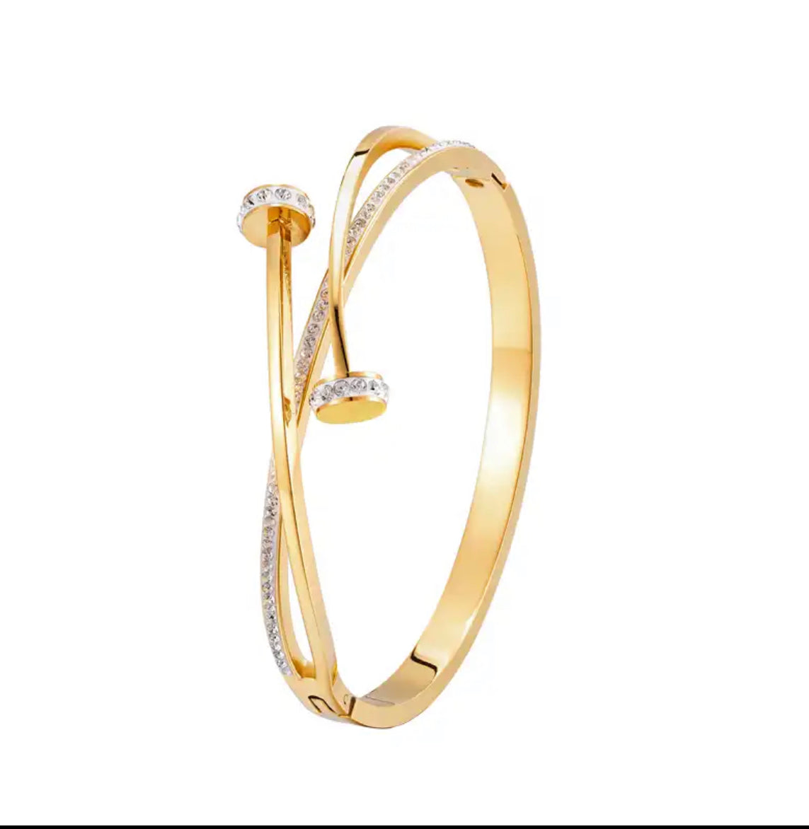 Introducing the exquisite 'Jasmine Bracelet' – a one-of-a-kind fashion accessory that exudes elegance and sophistication. This double nail head bangle is unlike any other, boasting crystal embellishments that add a touch of sparkle to your look.